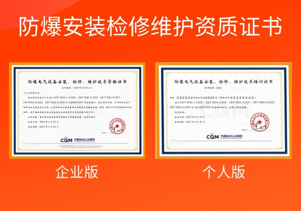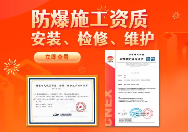 防爆施工资质是指企业以及个人在从事防爆电气产品安装、维护及其他相关工作时必须具备的法律认证,以确保企业的设备和操作符合国家安全标准。说得通俗易懂点就是需要《防爆电气设备安装检修维护资质证书》,简称防爆安装、检修、维护资质!
