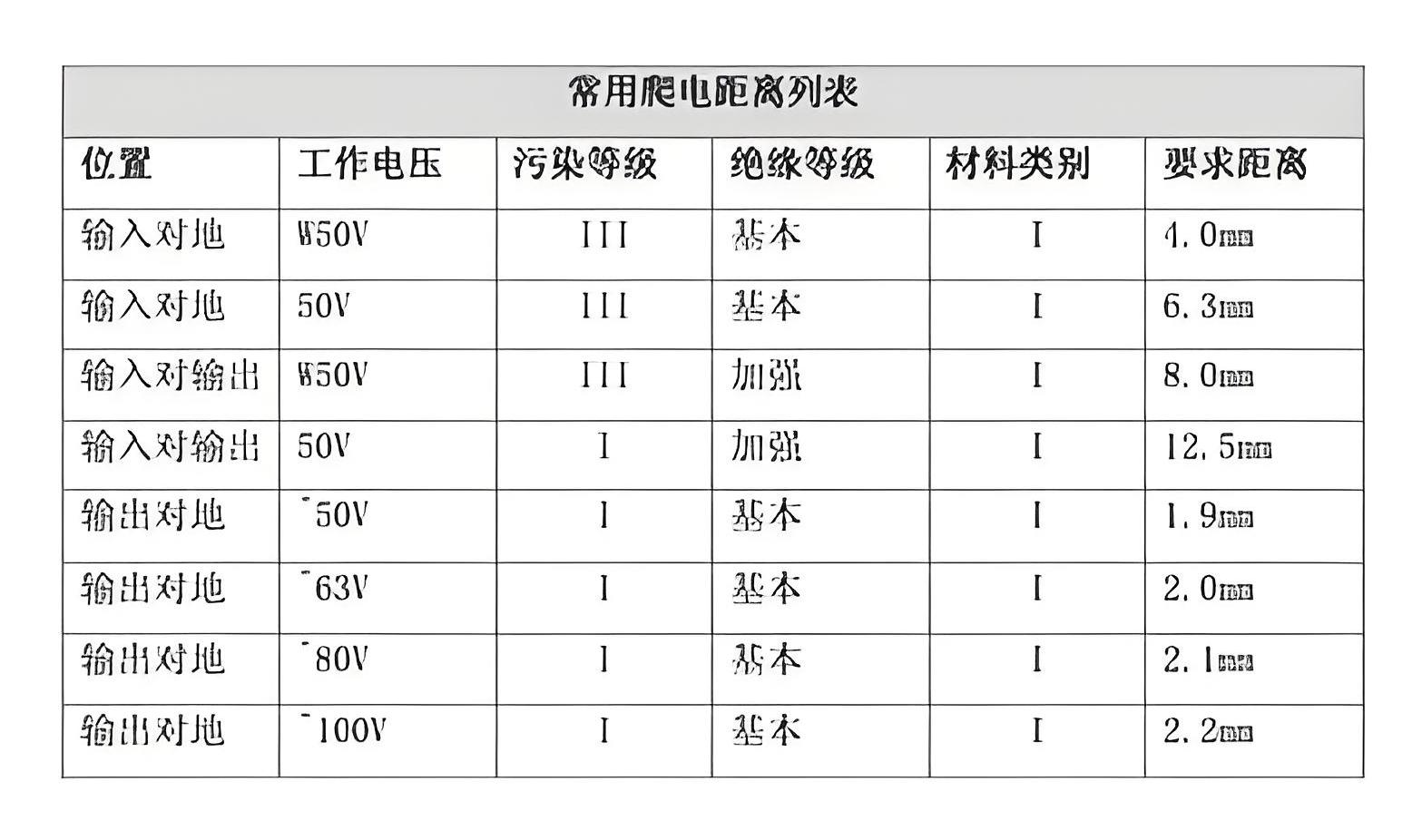 爬电距离的计算与要求
